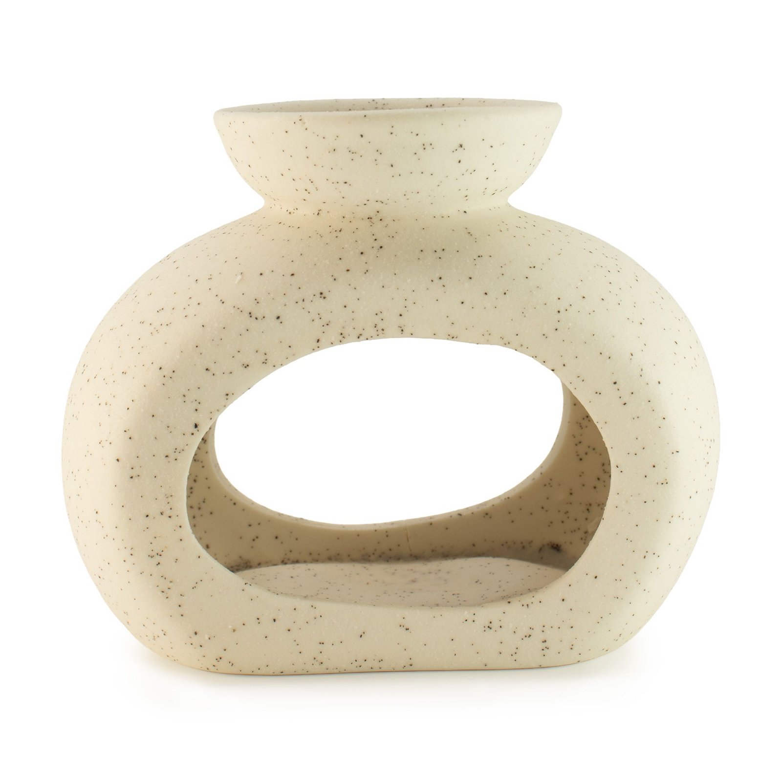 Ceramic Zen Oil Burner – Oval Pebble – Speckled Off-White