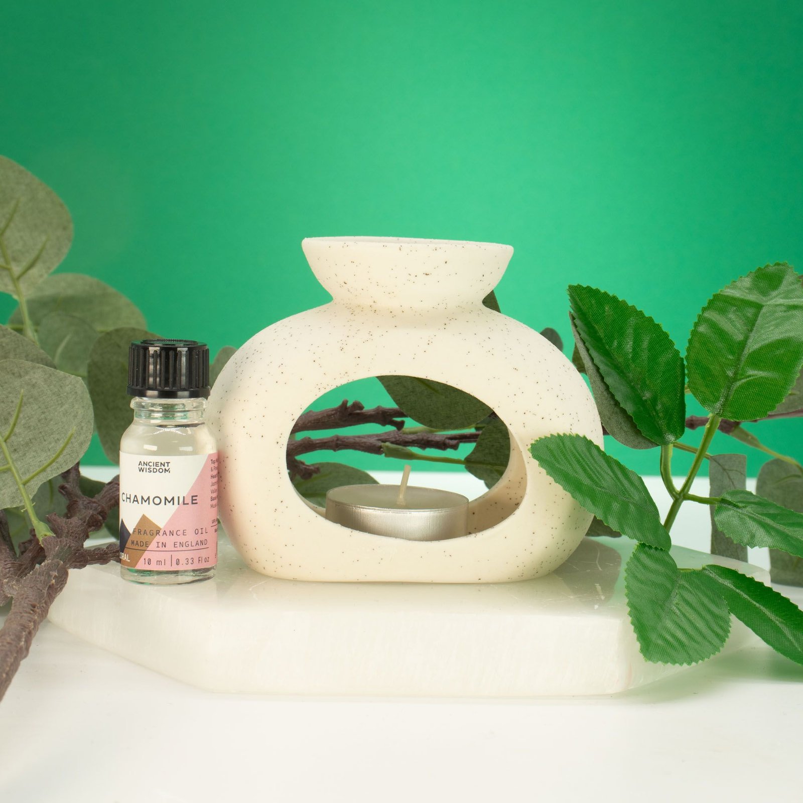 AromatherapyIntroduce a sense of calm simplicity to your home with the Ceramic Zen Oil Burner – Oval Pebble in Speckled Off-White. Its smooth oval shape and natural speckled finish create a modern decorative piece that gently releases your favourite fragrances.