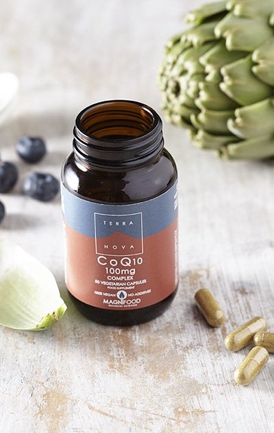 Terranova CoQ10 100 mg Complex er et stærkt, fuldstændig additiv- og fyldstoffrit ubiquinontilskud, hvis friske grøntsager og krydderurter, såsom acaibær, risklid og havtorn, naturligt indeholder ubiquinon og understøtter udnyttelsen af produktets ubiquinon.