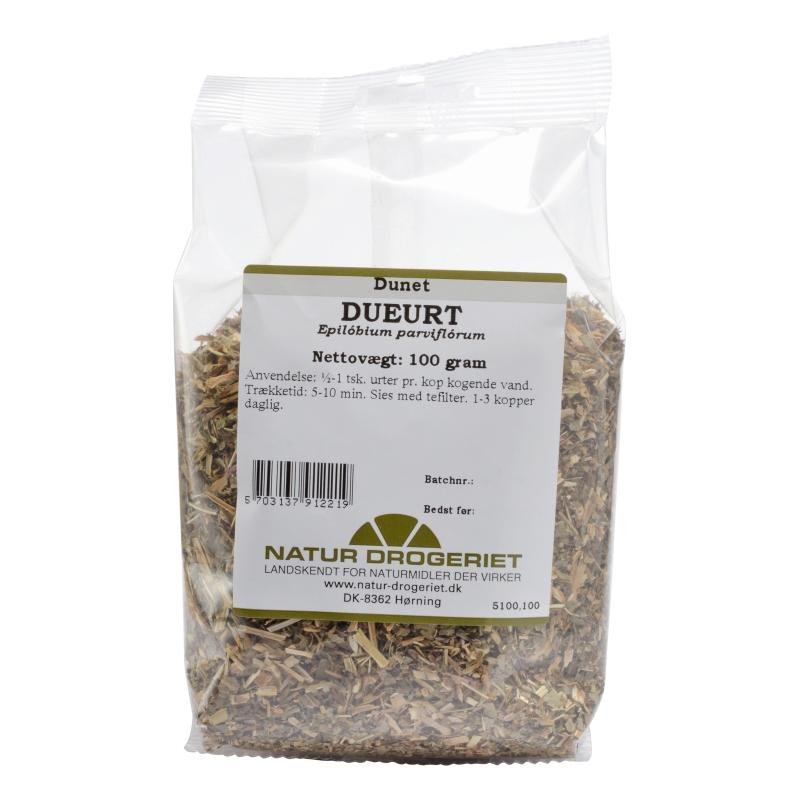 Dunet dueurt er en smuk lilla staude, der oftest findes ved søer, vandløb og kær. Tørret dunet dueurt anvendes til urtete.