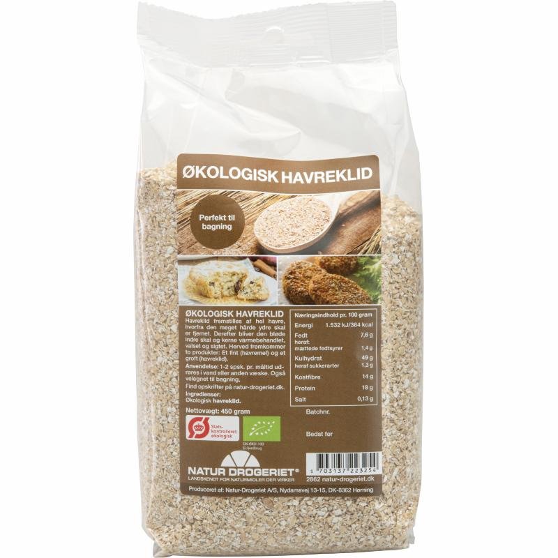 Økologisk havreklid indeholder kostfibre og er god til bagning.