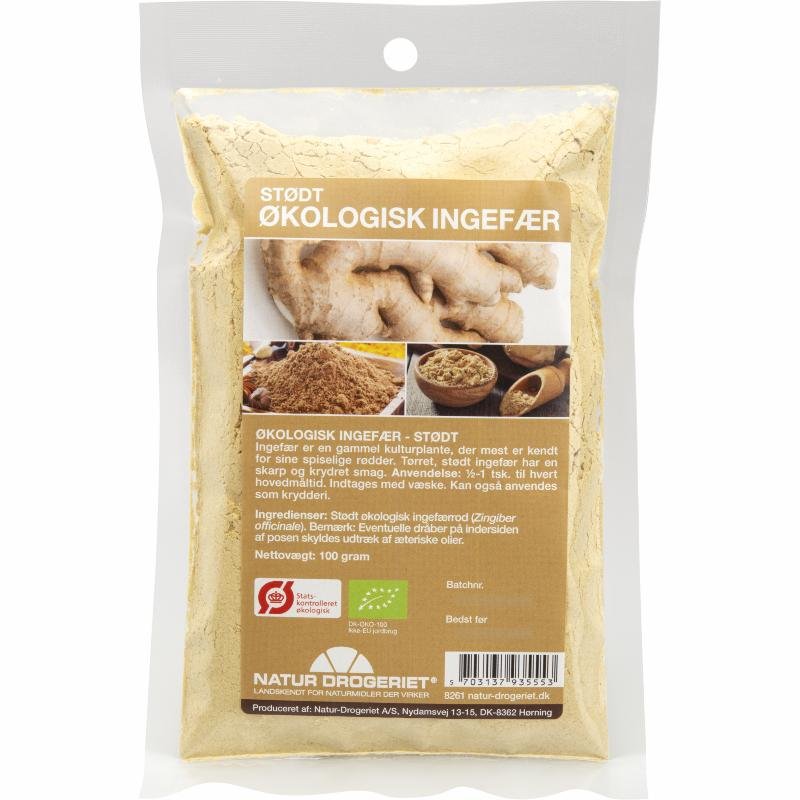 Stødt økologisk dyrket ingefær (Zingiber officinale)