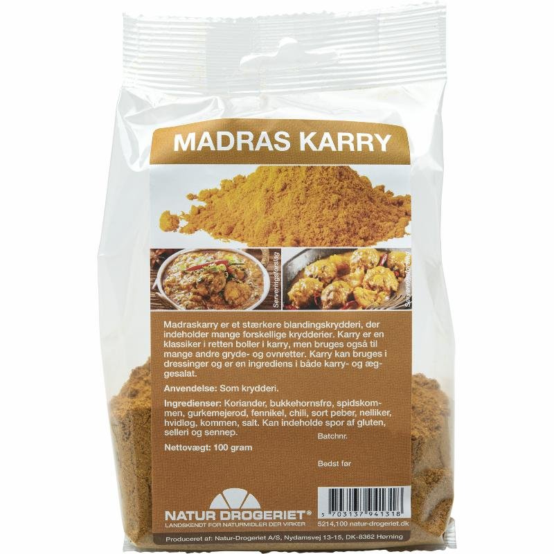 Natur-Drogeriets karry fås i to udgaver, en mild og en stærk. Madras karry er stærkere end indisk karry.
