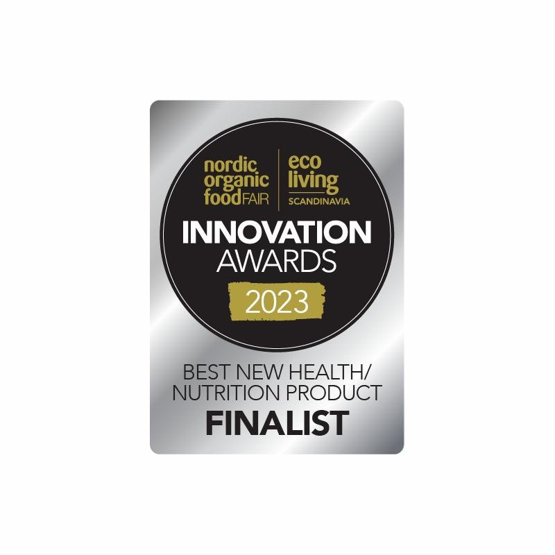 I forbindelse med Eco Living Scandinavia & Nordic Organic Food Fair var produktet finalist i kategorien ‘Best New Health/Nutrition Product’ ved Innovation Awards 2023.