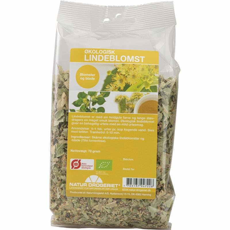 Lindeblomst er med sin hvidgule farve og lange støvdragere en meget smuk blomst. Økologisk lindeblomst giver en behagelig urtete med en mild urtesmag.