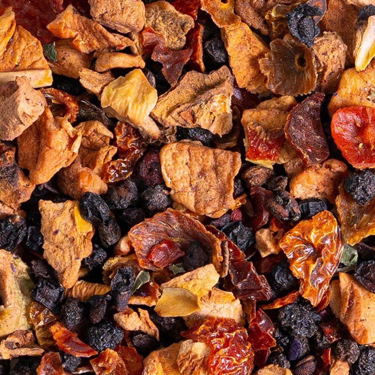Balade en Forêt kombinerer den milde sødme fra æble og hyldebær med den friske, let syrlige smag af vilde blåbær og ribs. Brombærblade tilføjer en subtil, urteagtig note, mens hibiscus og sorte ribs bidrager med en fyldig smag og en smuk farve. Den naturlige sødme fra solbær afrunder teen og giver en behagelig, frugtig dybde. Denne økologiske blanding er perfekt til dem, der søger en forfriskende og afbalanceret teoplevelse med skovens smage.