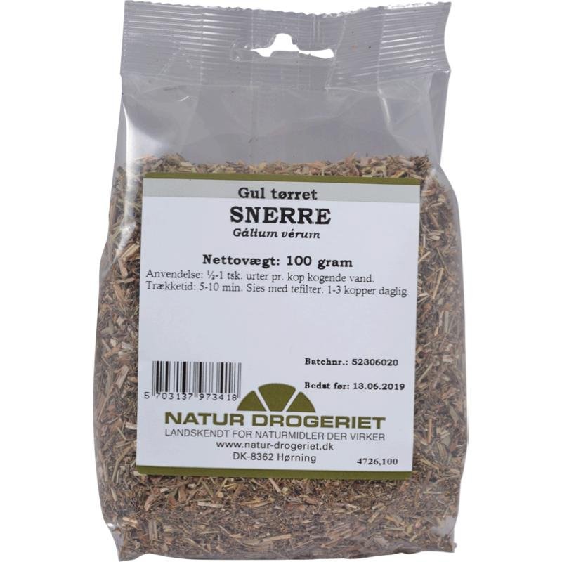 Gul snerre har en sød, honningagtig duft, som ofte kan lugtes, når man bevæger sig rundt i de danske hedeområder. Gul snerre er gennem tiden blevet anvendt meget i urtete, da dens liflige duft også afspejles i smagen. Ligeledes er gul snerre en fremragende urt i snaps, hvis man ønsker en lidt sød snapsetype.